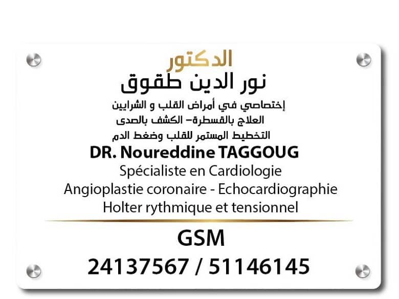 Cabinet de cardiologie du docteur Noureddine Taggoug cardiologue à El Mourouj 5 spécialiste des maladies cardiovasculaires.